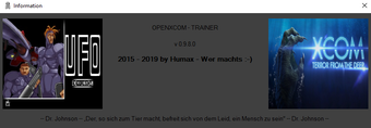 OPENXCOM - TRAINER for OpenXcom is a specialized utility designed for players of OpenXcom, enabling users to manipulate their save files easily. This free tool allows for significant enhancements in gameplay, including adjustments to money, difficulty levels, and soldier statistics. With features like the ability to finish constructions, heal wounded soldiers, and speed up various processes, it provides a robust set of options to streamline the gaming experience.